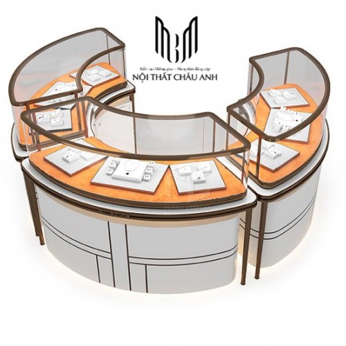 Mẫu KIOT V05 là một trong những dòng sản phẩm cao cấp của Nội thất Châu Anh, được thiết kế chuyên biệt dành cho tiệm vàng, showroom hoặc trung tâm thương mại. Với kết cấu dạng cong mềm mại cùng phần chân inox mạ vàng lấp lánh, sản phẩm không chỉ giúp tối ưu diện tích trưng bày mà còn nâng tầm thẩm mỹ không gian kinh doanh.