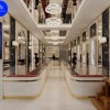 Thiết kế trần gương phản chiếu tạo cảm giác trần cao hơn thực tế. Hiệu ứng này làm không gian trở nên thông thoáng và sang trọng hơn rất nhiều. Việc sử dụng gương cũng giúp nhân đôi ánh sáng, tạo sự lấp lánh cần thiết cho tiệm vàng.