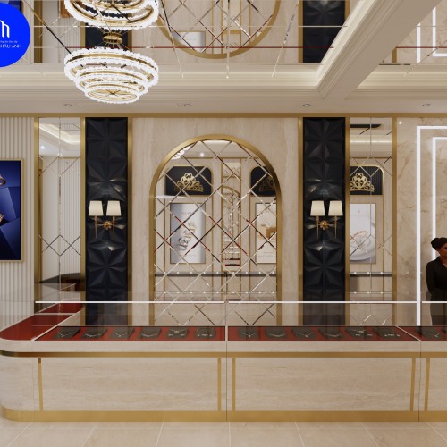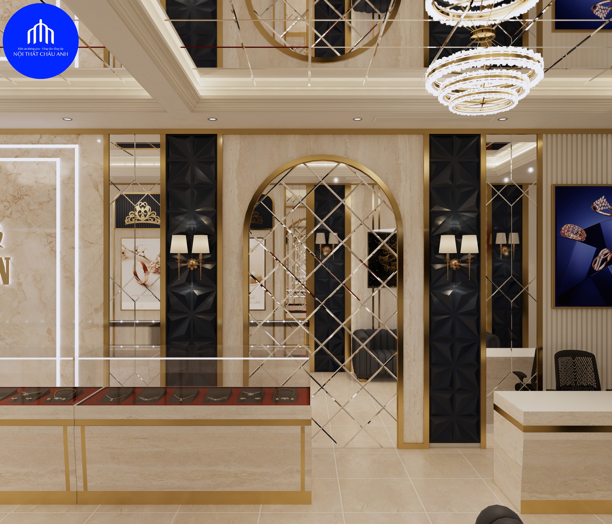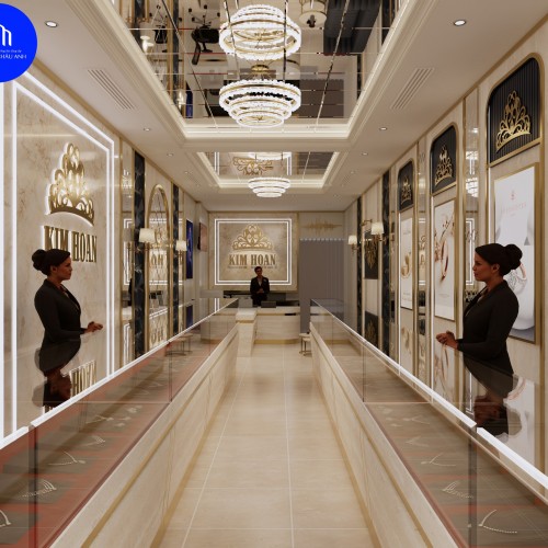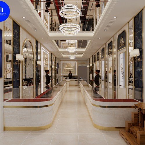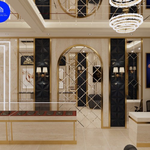 Tiệm vàng là loại hình kinh doanh đòi hỏi tiêu chuẩn thẩm mỹ cao. Không gian phải tạo cảm giác tin cậy và chuyên nghiệp, đồng thời phô diễn được giá trị của từng sản phẩm. Với diện tích 60m2, đội ngũ thiết kế hướng tới phong cách sang trọng, đối xứng và đậm tính nhận diện thương hiệu.
