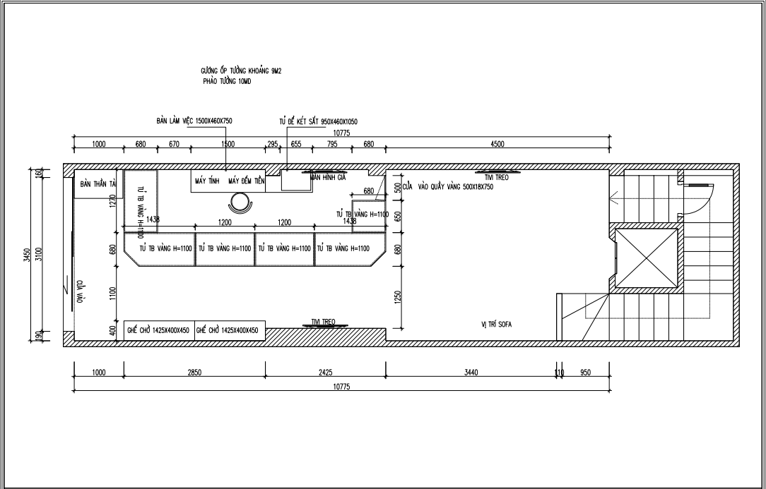 Tiệm vàng hiện đại không chỉ cần trưng bày sản phẩm bắt mắt, mà còn phải thể hiện được đẳng cấp và uy tín của thương hiệu. Thiết kế tiệm vàng Kim Thanh của chị Huyền tại Cao Bằng được triển khai với định hướng rõ ràng tối ưu diện tích, đảm bảo công năng và tôn vinh giá trị sản phẩm. Từng mảng tường, hệ tủ trưng bày, ánh sáng và màu sắc được phối hợp hài hòa thể hiện gu thẩm mỹ và sự chuyên nghiệp của chủ đầu tư.