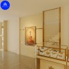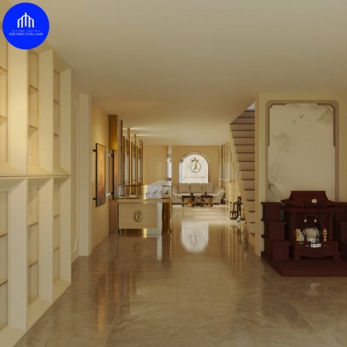 Bề mặt sàn lát đá marble sáng bóng góp phần làm tăng chiều sâu cho không gian, đồng thời phản chiếu ánh sáng tự nhiên, khiến khu vực trưng bày trở nên lung linh hơn.