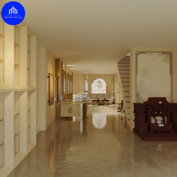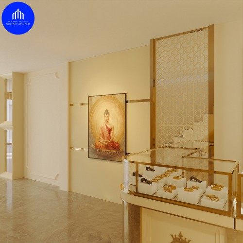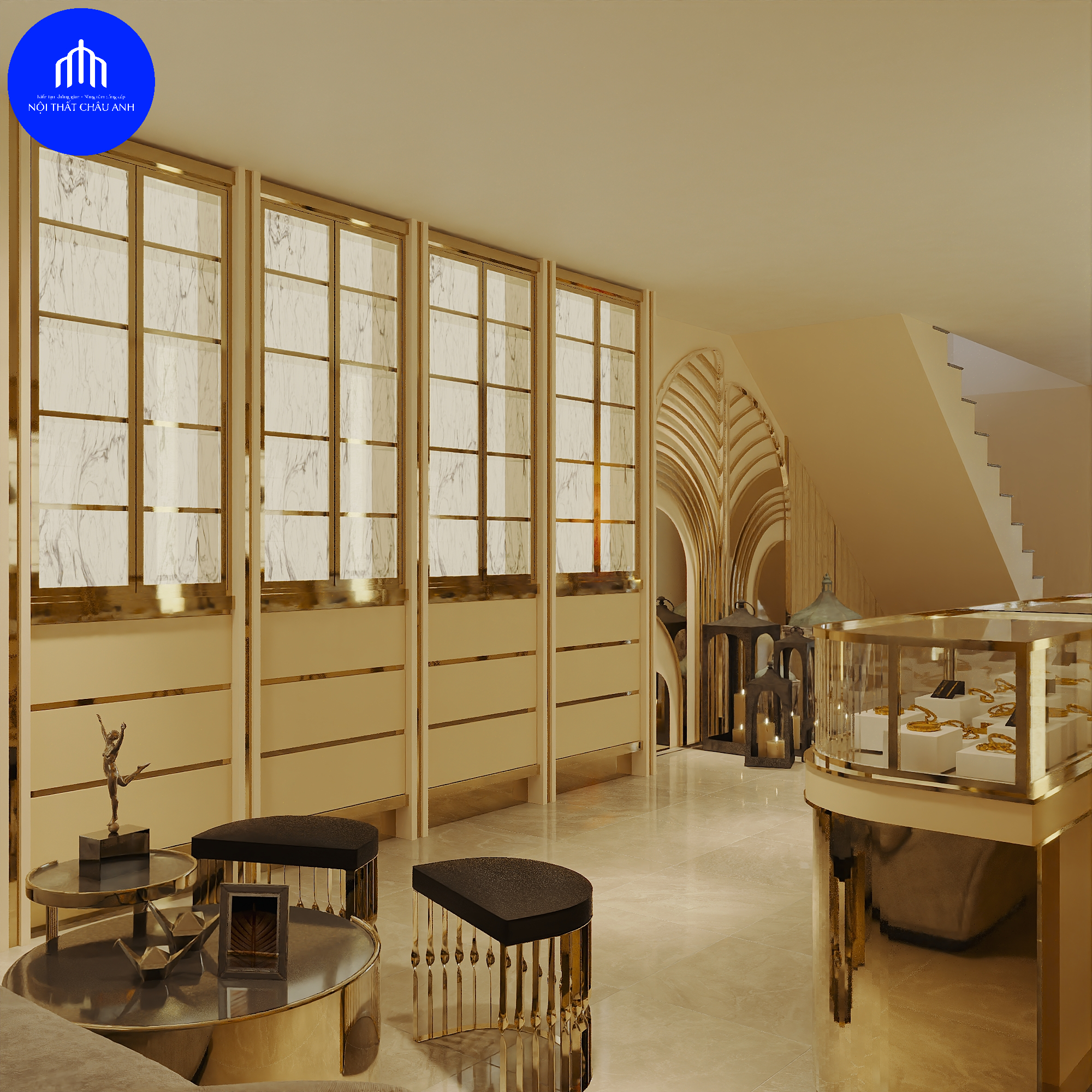 Cách lựa chọn gam màu sáng cùng ánh sáng phản chiếu từ bề mặt kính giúp không gian thêm chiều sâu. Việc hạn chế các chi tiết rườm rà cũng giúp nội thất trở nên thanh thoát hơn, thể hiện tinh thần hiện đại mà vẫn giữ được vẻ sang trọng đặc trưng của ngành vàng bạc.