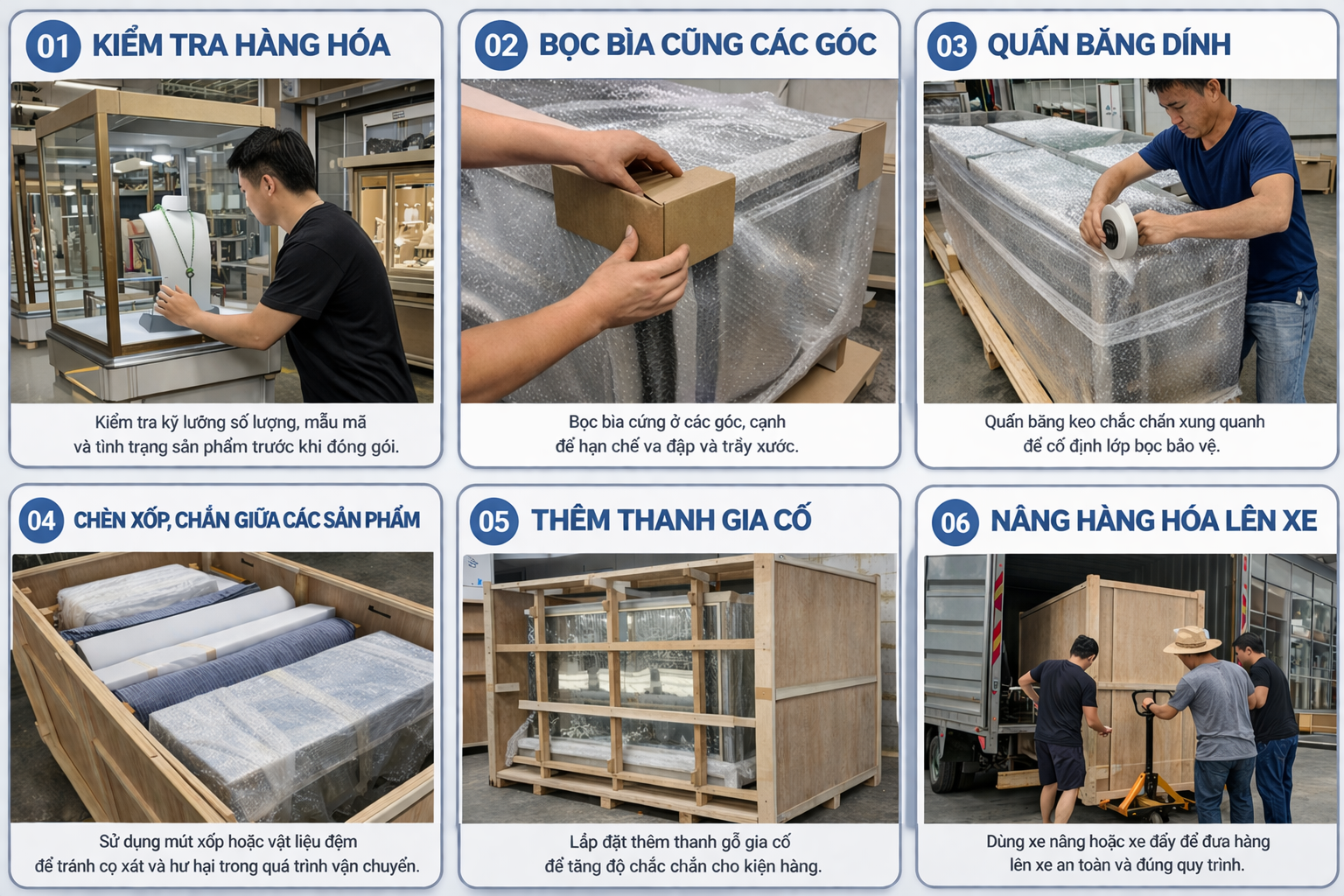 - Bước 5: Thêm thanh gia cố đối với sản phẩm có kính khi đóng gói lên xe